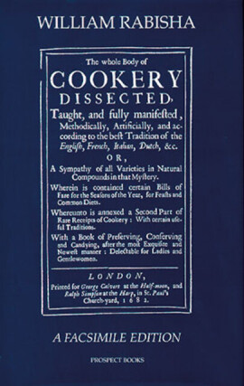 The text is a remarkable statement of the art of cookery as it was in the 1660s, and proved to be surprisingly influential over a very long period: there are examples of wholesale borrowing from his recipes as late as the middle of the eighteenth century. Of course, he himself took advantage of recipes from earlier authors as well as using his book for conservative, revivalist ends. Hence his recycling of a treatise on carving that started its life in the fifteenth century, and his printing of an order of feasting from that same period. All this was so ‘that thou maist see what Liberality and Hospitality there was in Antient times amongst our Progenitors: Thus hoping to see Liberality flourish amongst us once more, as in old time’. Along with Robert May, Rabisha was important in the development of seventeenth-century English cuisine. Their professional lives and publications reflected their politico-religious affinities and resulted in what Stephen Mennell calls ‘the “courtly” genre of cooking and recipe selection which catered to an affulent audience as evidenced by the use of expensive ingredients, elaborate preparations, and increased reliance on sauces, and which was often influenced by continental cookery.